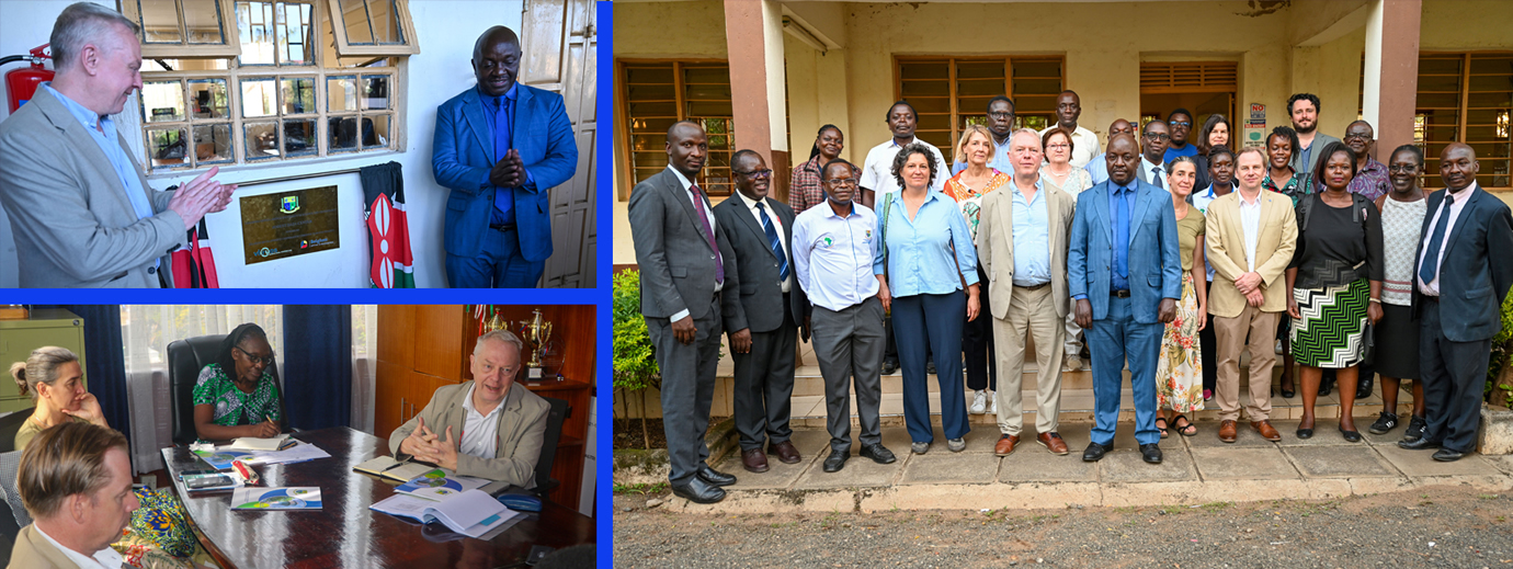 JOOUST, welcomed a goodwill delegation from Vrije Universiteit Brussel (VUB), Belgium headed by the VUB rector. The delegation was welcomed by the Vice Chancellor, Prof. Emily A. Akuno. VUB is the lead partner in the JOOUST-VLIR-Inter University Collaboration (IUC) program. The purpose of the visit is to identify and strengthen opportunities for partnership and collaboration in teaching and research. Key priority areas envisaged are in natural resource management, agri-food systems, health systems, ICT for teaching and learning, and climate.