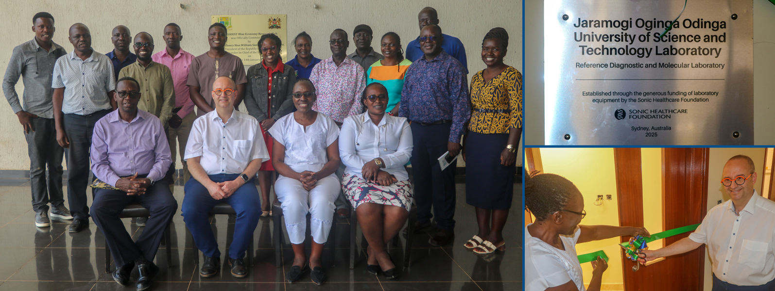 Jaramogi Oginga Odinga University of Science and Technology’s Blue Economy Hub today marked a key milestone with the official handing over of the new set of equipment for the Health Diagnostics Laboratory, funded by the Sonic Foundation, Australia at the tune of A$400,000. Prof. John Paul Bogers of the University of Antwerp, Belgium, presented the Equipment to the Vice Chancellor, Prof. Emily Achieng’ Akuno in a ceremony also attended by the Deputy Vice Chancellor Academic Affairs, Prof. Elijah Ateka, the Local VLIR JOOUST-IUC Program coordinator Prof. Dennis Ochuodho and the local Team Leader of the Health Sub-Project, Dr. Jane Owenga.